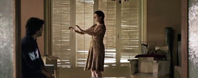 Quando o reaparecido Luiz (Cesar Troncoso) dá as caras de repente no meio da mudança de Vera (Denise Fraga), o apartamento recém-comprado torna-se um cenário ambivalente, coisa mental, um pouco como nos velhos e bons filmes de Carlos Saura. O ambiente da clandestinidade se instala em paralelo à atmosfera prosaica da chegada dos móveis, da torneira que não para de pingar, etc. Os dois tempos psicológicos vão de alguma maneira conviver no mesmo recinto, de acordo com códigos de luz (réstias e obscuridade no "passado", invasões de claridade no presente) e formas de enquadramento (imagens entrevistas ou closes intensos no "passado", planos médios e diretos no presente). E ainda uma delicada intervenção de projeções que adicionam camadas ao huis-clos de Luiz e Vera. O monólogo de Denise diante de uma janela com uma dessas projeções é momento antológico da bela obra da diretora.