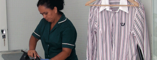 O simples fato de transferir para os jovens a seleção de momentos, o grau de proximidade e o tipo de relação entre quem filma e quem é filmado já garante um ponto de vista diferenciado. Mais que isso, gera uma tensão muito típica dos contatos entre patrão e empregado no âmbito doméstico. A pouca idade dos filmadores ameniza um bocado essa tensão, mas ela está lá, explicita ou implicitamente, naqueles atos de flagrar, expor, conversar. A diversidade de posturas dos empregados, as relações de cada um com o espaço físico da casa, a maneira como cada qual reage ao fato de se tornar estrela do filme, tudo isso diverte e constrange ao mesmo tempo.