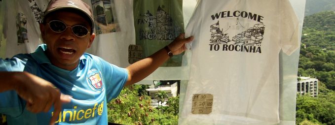 Nesse filme penetrante e desconcertante há muitos detalhes para se prestar atenção: o rapaz que tira a camisa para se fazer fotografar em clima de favela, o senhor israelense com a camisa 10 da seleção canarinho, as saias justas entre turistas e comerciantes, a argumentação do guia consciente quanto às limitações do desenvolvimento brasileiro enquanto as mocinhas se divertem tirando fotos. Enfim, está ali toda uma dramaturgia da exploração turística, junto com uma suspeita quanto ao futuro da cidade depois que passarem a Copa e as Olimpíadas. Mas, afinal, isso é outro lugar comum.